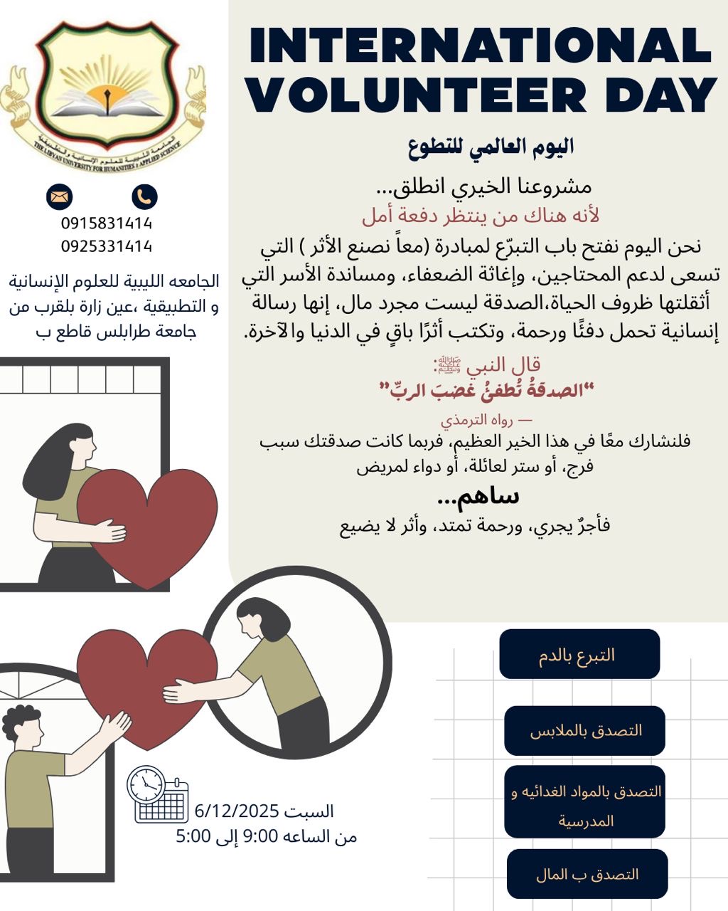 السبت 06/12/2025 🗓️ الجامعة الليبية للعلوم الإنسانية والتطبيقية ✨ بالعطاء نرتقي 🌟