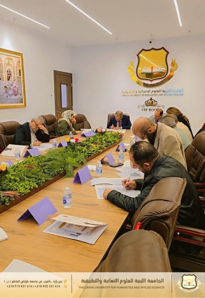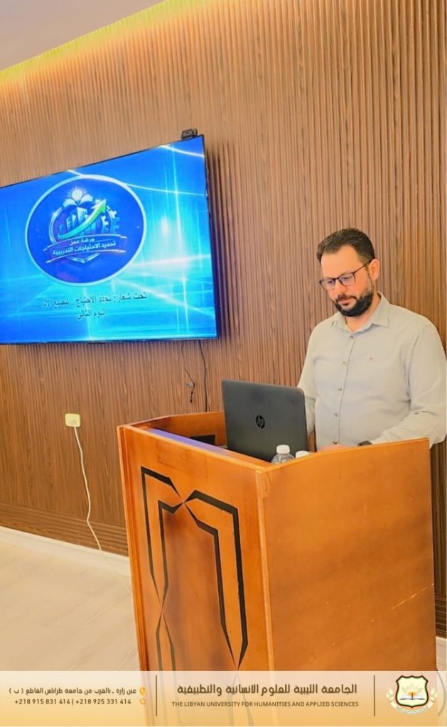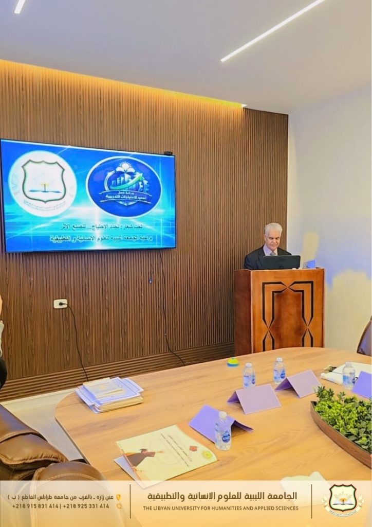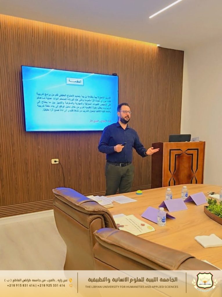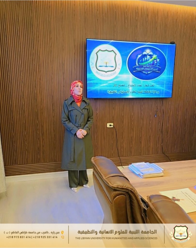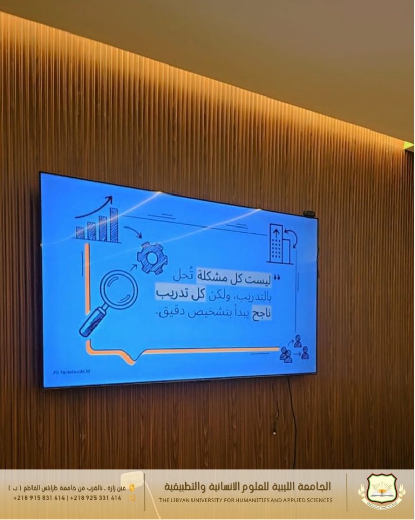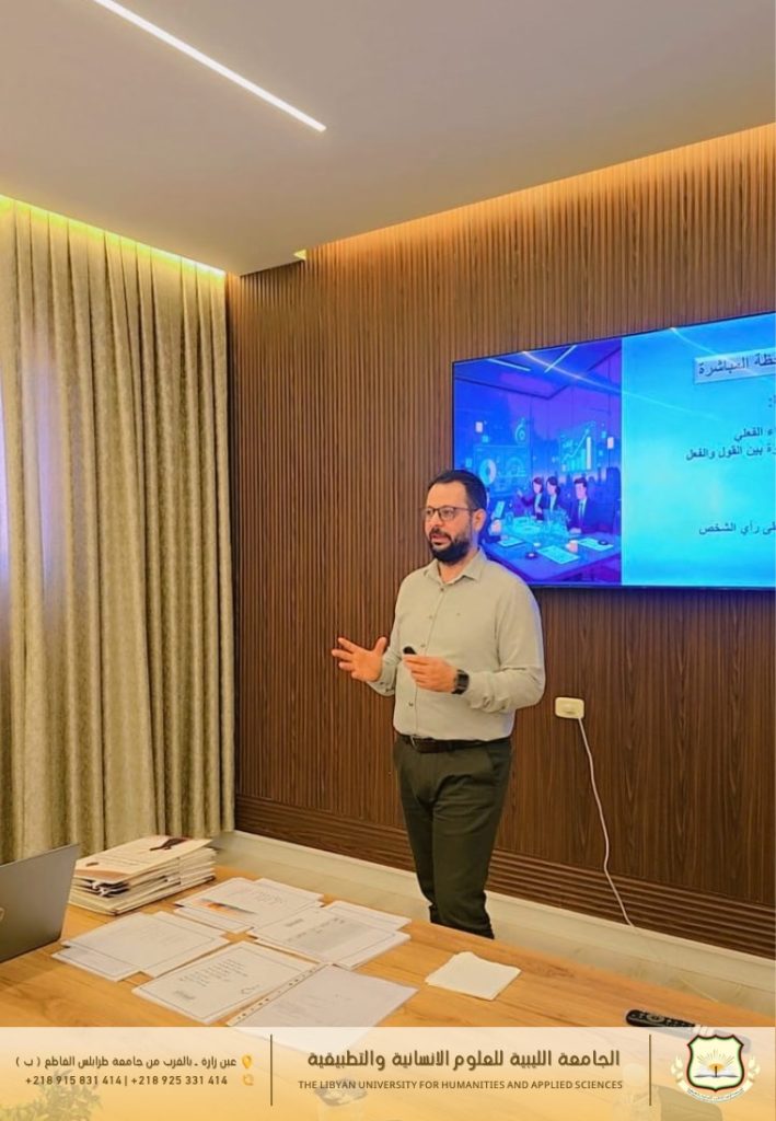 في إطار حرصها على تعزيز جودة الأداء المؤسسي وبناء القدرات، نظّمت الجامعة الليبية للعلوم الإنسانية والتطبيقية بالشراكة مع فريق سفراء النجاح ورشة عمل متخصصة بعنوان:
